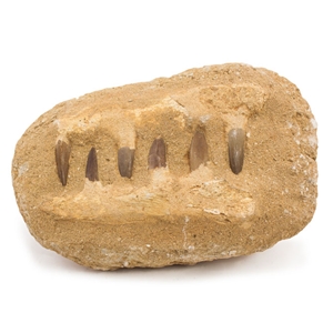 This Mosasaur Jaw with teeth is embedded in a natural matrix Of sandstone just like they came straight out of the ground.