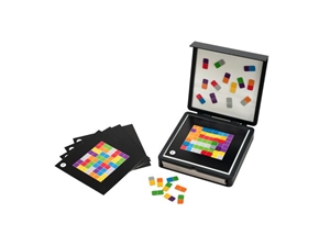 Includes 28 two-color, magnetic pieces; 100 double-sided challenge cards; and a carrying case that doubles as a play board