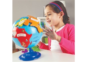 Spin your way into geography with this Puzzle Globe, which highlights landmarks and animals. Each puzzle piece (continent) fits into one hole on the globe to make it easy for little ones to place. All 7 continents are represented (6 continent puzzle pieces plus stationary Antarctica). Globe measures 8' in diameter; largest piece (Asia) measures 5 3/4 'L.